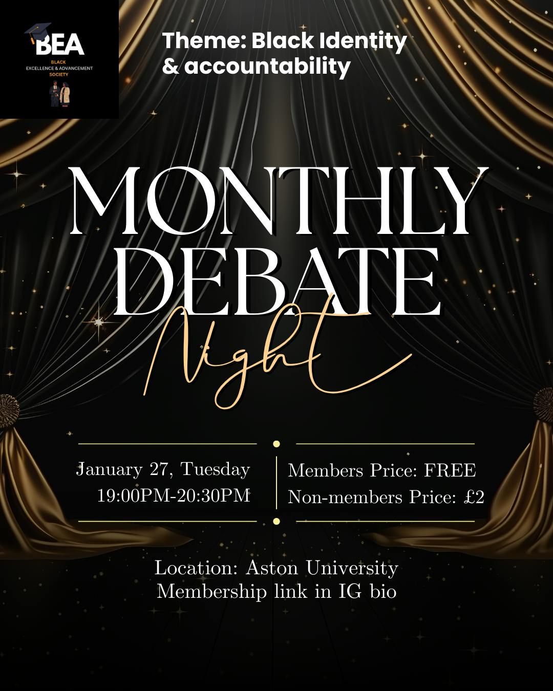 Join The BEA Society for an interactive debate night exploring the conversations we don't always get to have - about culture, identity, and accountability within our communities.This isn't a panel and it's not about "winning". It's a guided, respectful space where students can share perspectives, challenge ideas, and listen openly. Whether you're confident speaking or prefer to observe, there's space for you.