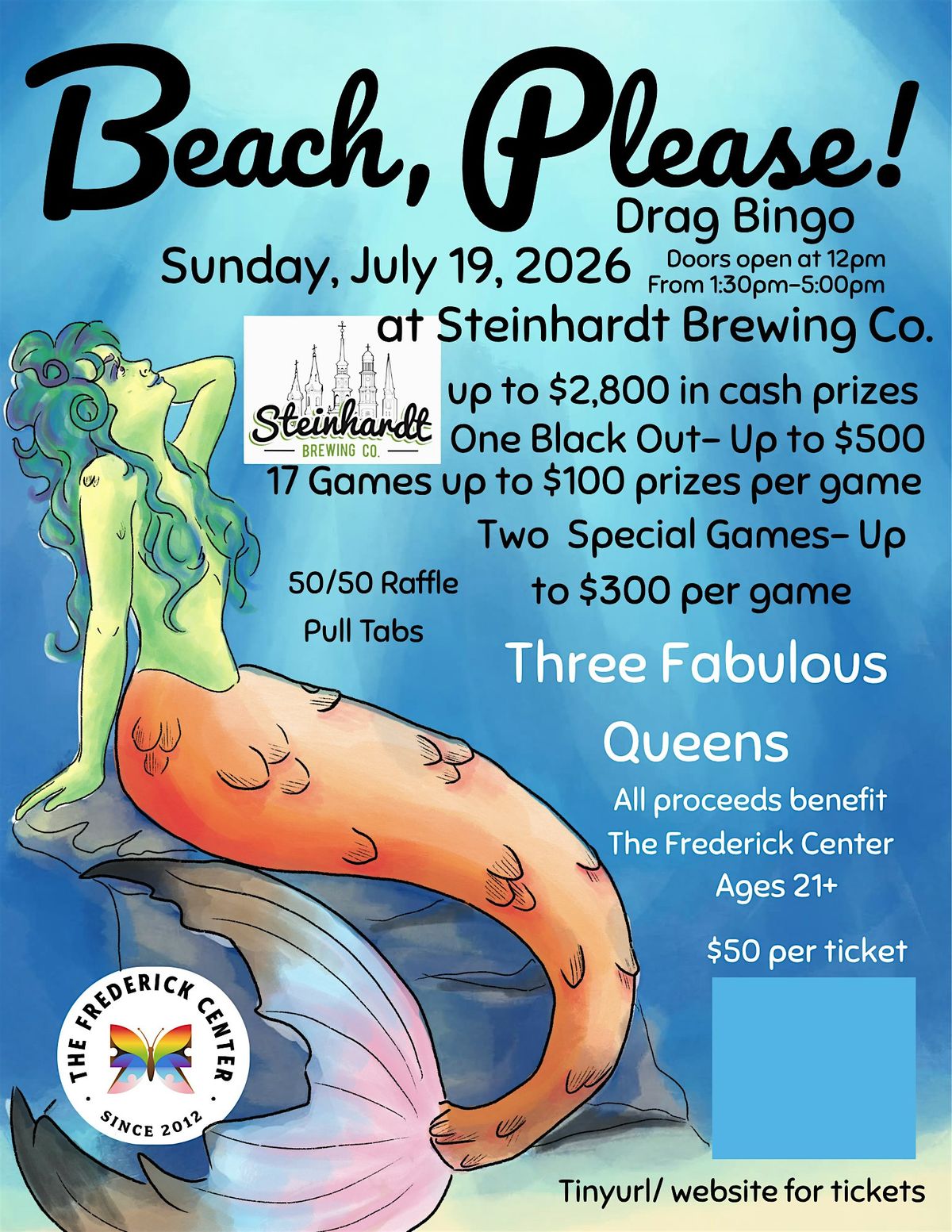 All proceeds from this event go to benefit The Frederick Center, a 501c-3 nonprofit dedicated to serving the LGBTQ+ community of the greater Frederick area.
