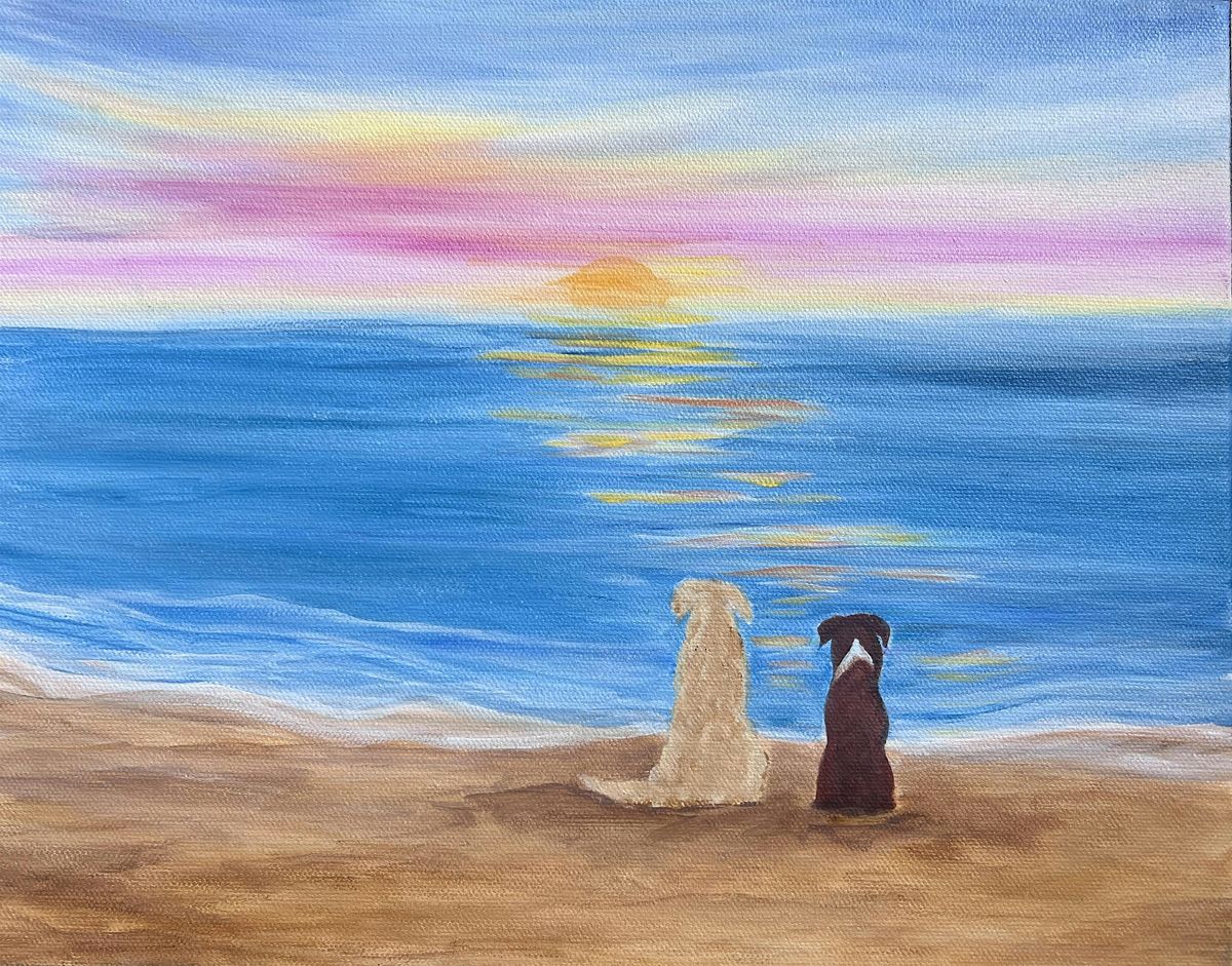 Enjoy a fun, laid-back atmosphere where you can sip a drink, chat with friends, and let your creativity flow as you paint your very own sunset scene. By the end of the class, you’ll have a one-of-a-kind artwork to cherish forever—and a beautiful memory of painting your dog on the beach!