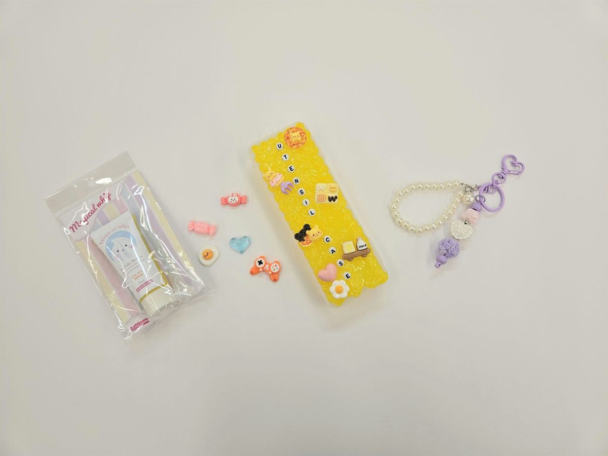 You will select either one Deco Whip Photo Case (also replacable with an item from our Zakka Section) and Beaded Keychain OR one Hair Pin and Beaded Pen!