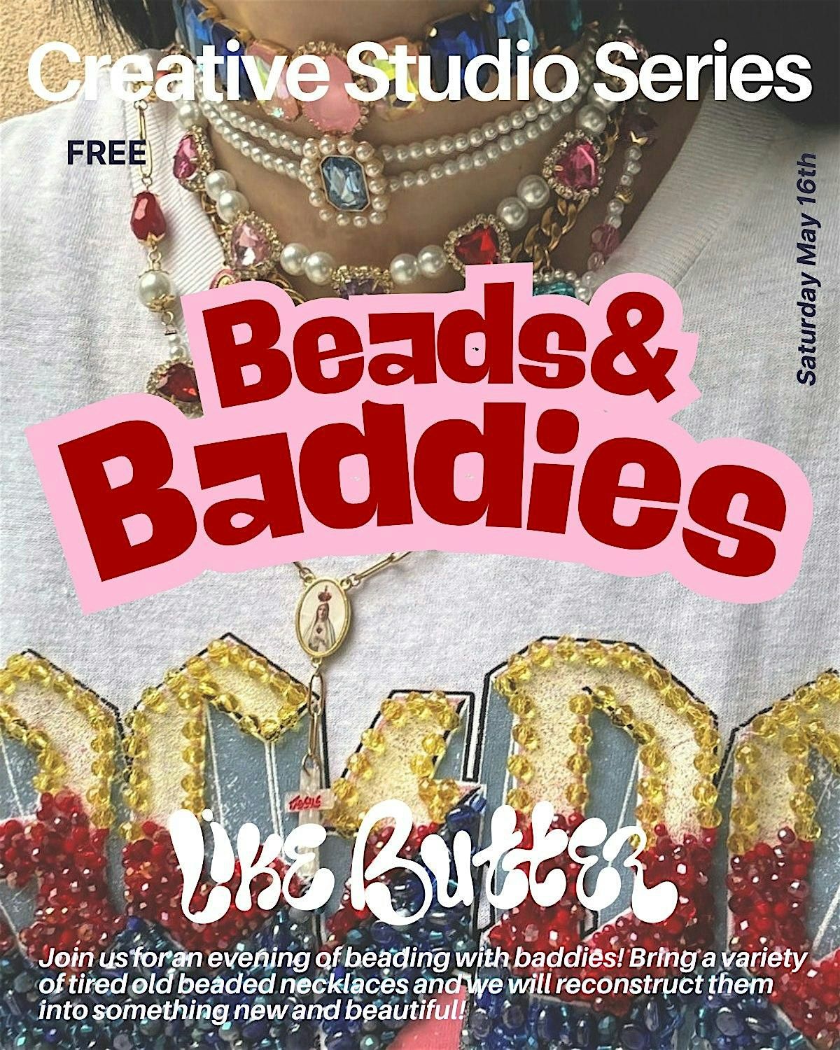 An evening of beading with baddies at Like Butter! Bring a variety of tired old beaded necklaces and we will reconstruct them into something new and beautiful together!