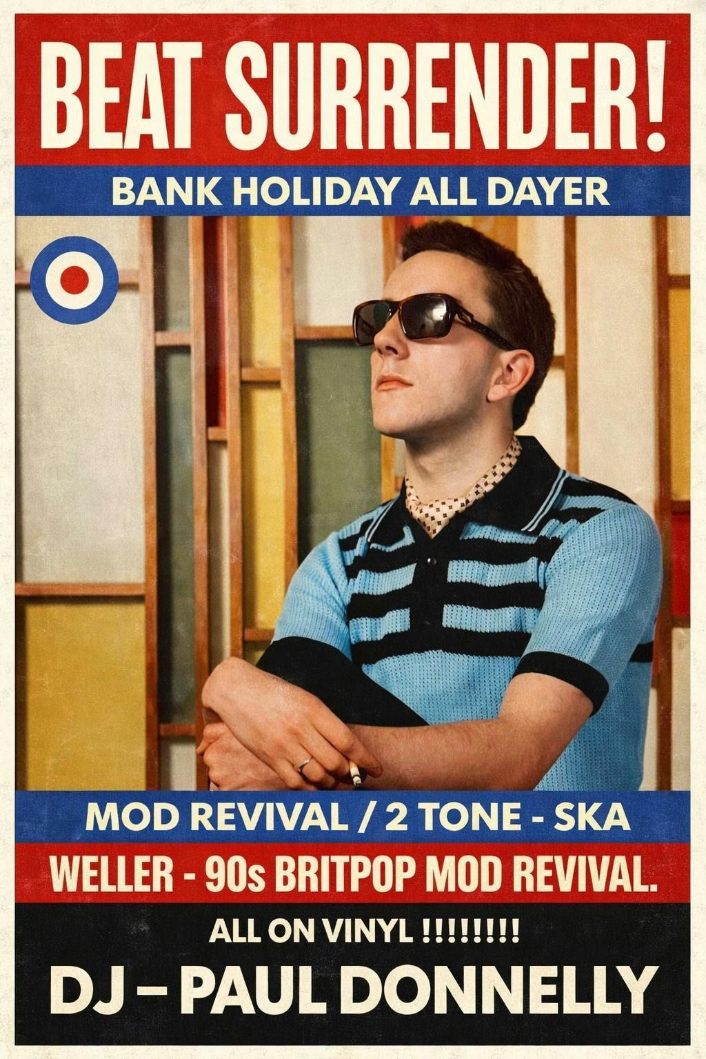 Beat Surrender – Bank Holiday Rooftop All DayerWe’re taking things upstairs for a Bank Holiday rooftop session dedicated to the sound and spirit of 2 Tone, Mod Revival and 90s Mod, played properly on vinyl.