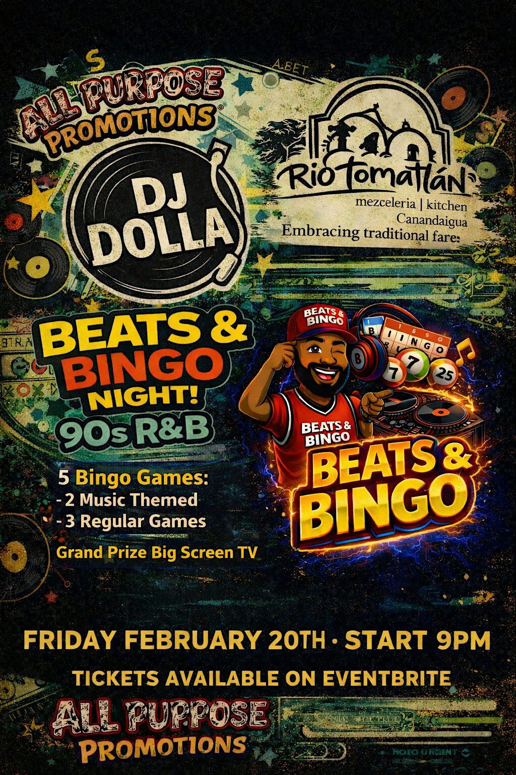 Beats and bingo are back bigger than ever ! 5 big games 2 music theme 3 regular music games 5 big prizes raffles and more !!