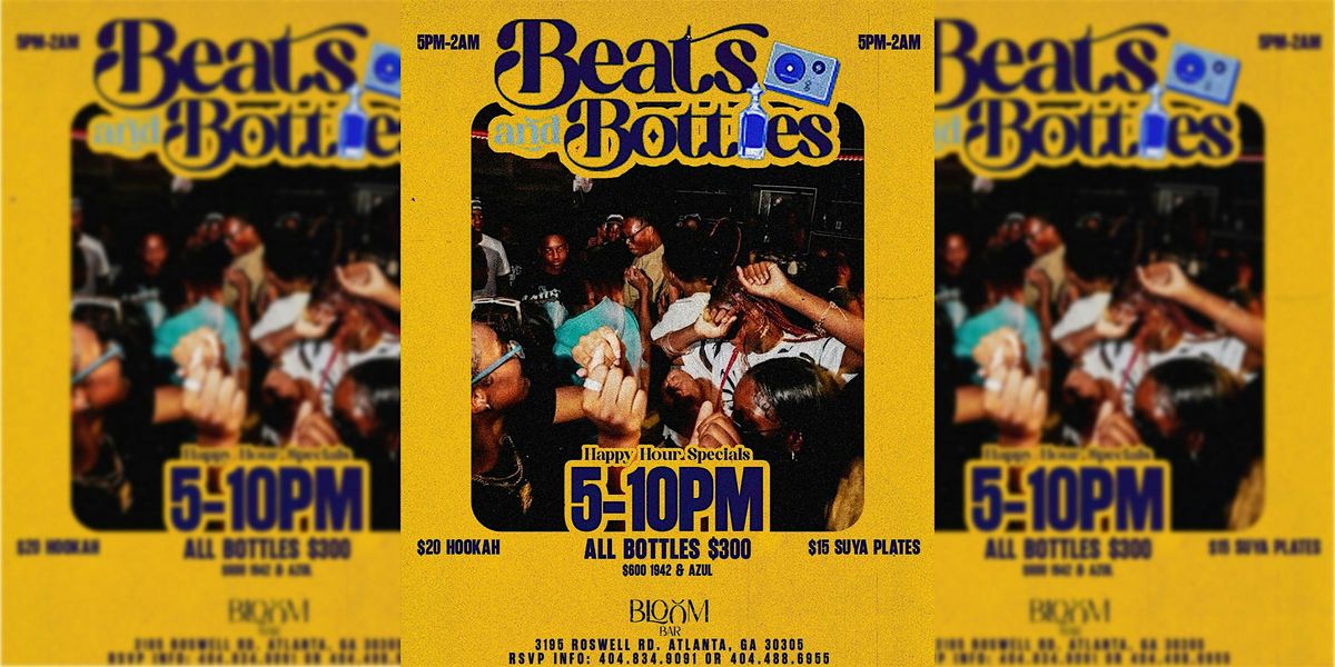 Beats & Bottles Thursdays — upscale vibes, crafted cocktails, full kitchen & hookah, 5PM–2AM. Free RSVP, VIP 404-488-6955.About this Event