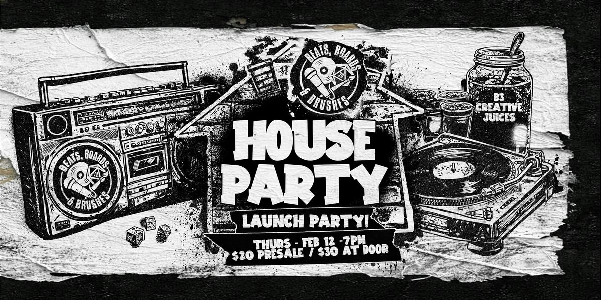 The Beats, Boards & Brushes House Party / Launch Party is a night built around music, games, food, and community ... the way gatherings are supposed to feel. We’re celebrating the launch of (B³), a nonprofit using art, storytelling, and play to bring people together and invest in neighborhoods through creativity.