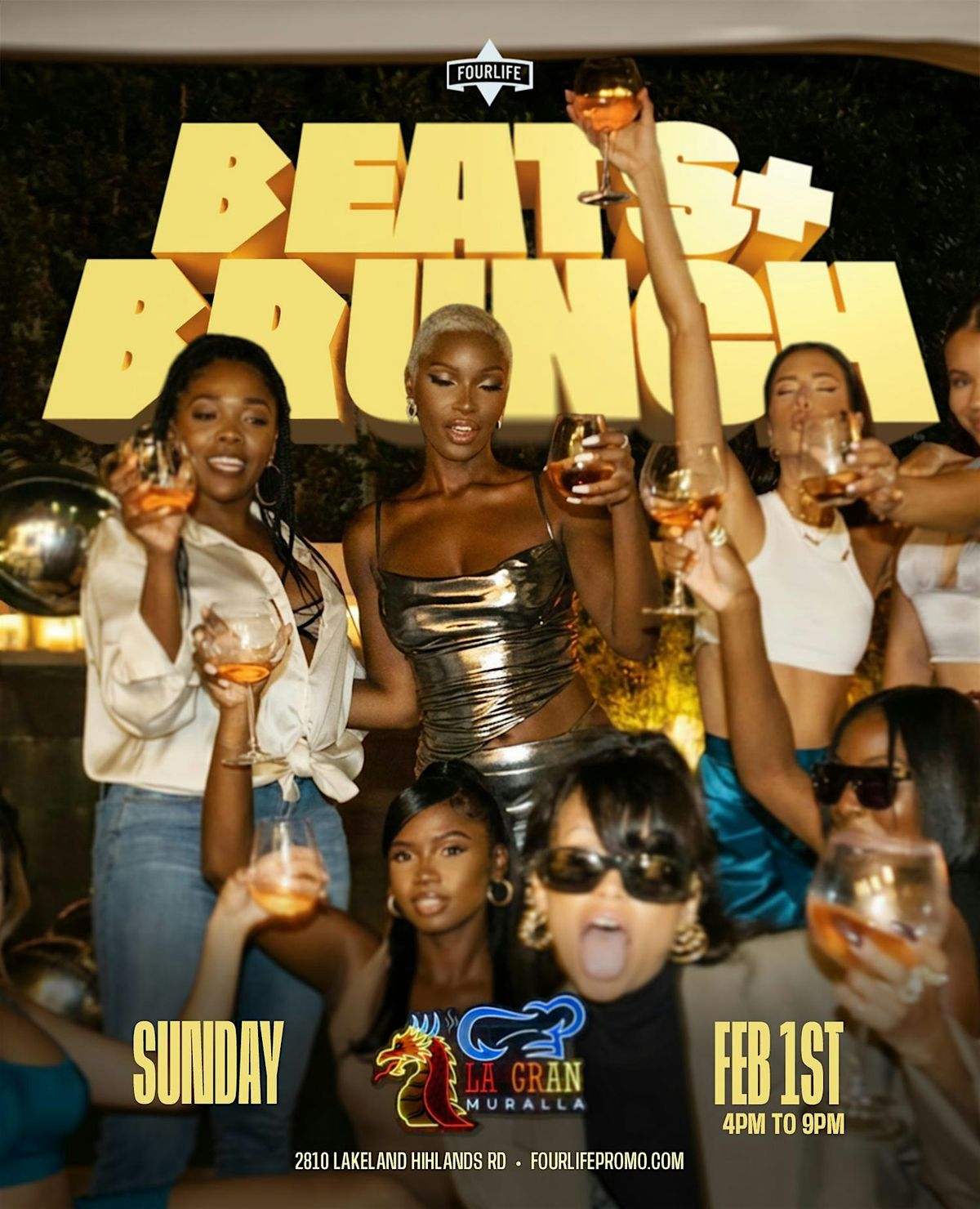 Join Fourlife Promotions for Beats N Brunch Every 1st Sunday, at Lagran Muralla 28`10 Lakeland Highlands Rd. Lakeland Florida.