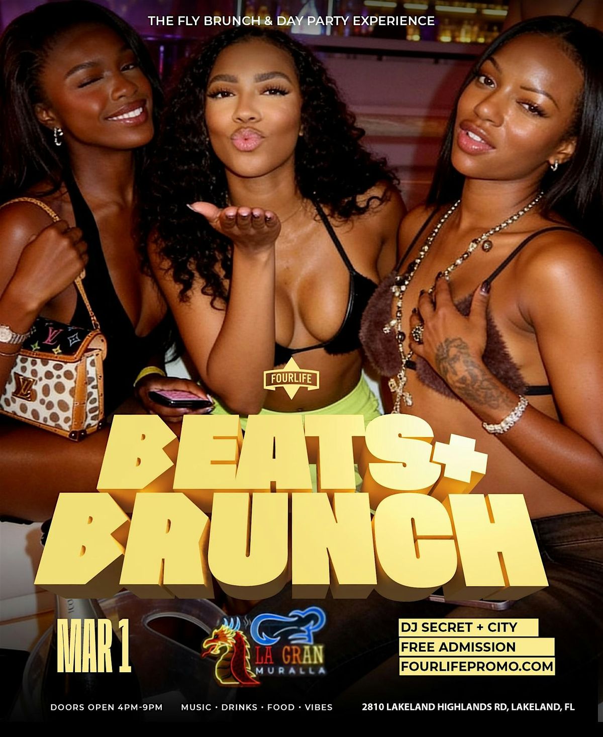 Join Fourlife Promotions for Beats N Brunch Every 1st Sunday, at Lagran Muralla 28`10 Lakeland Highlands Rd. Lakeland Florida.