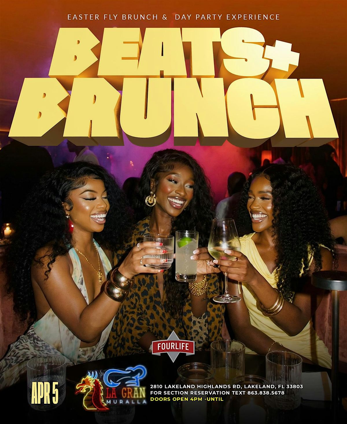 Join Fourlife Promotions for Beats N Brunch Every 1st Sunday, at Lagran Muralla 28`10 Lakeland Highlands Rd. Lakeland Florida.