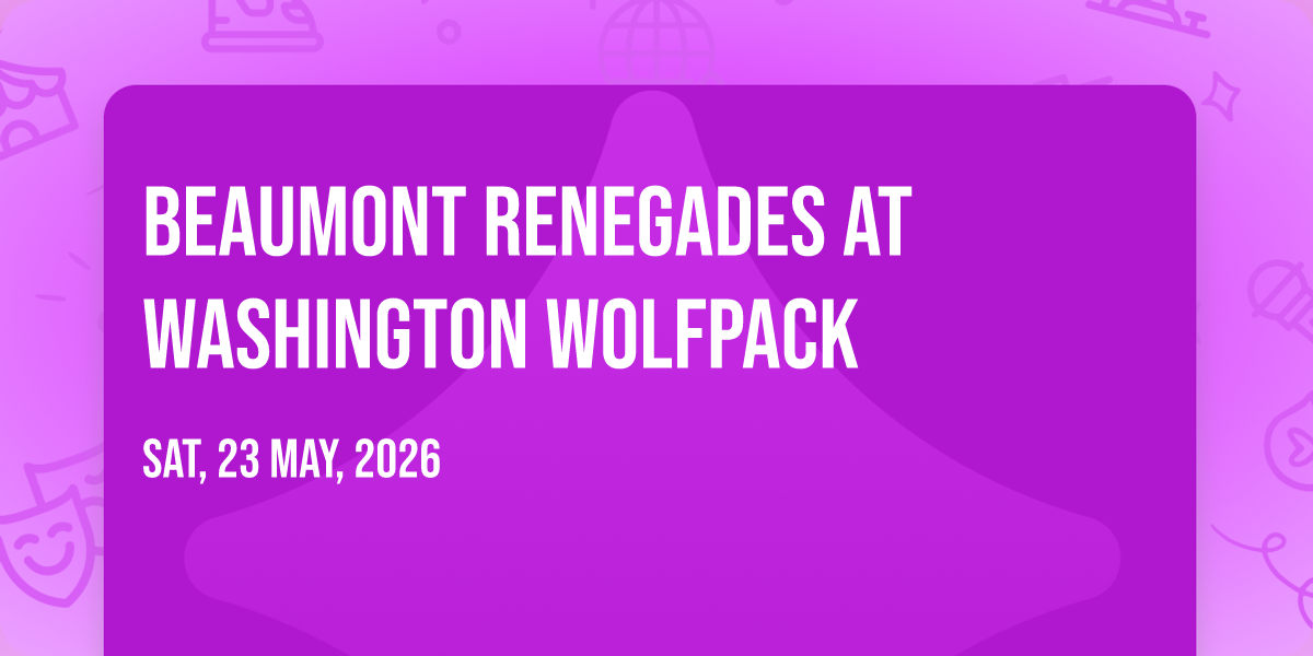 📍 Location: 47.9786, -122.203🌟 Journey into wonder at Beaumont Renegades at Washington Wolfpack, where extraordinary experiences await around every corner! 🏛️ Set against the backdrop of Angel of the Winds Arena in dynamic Everett, WA, this event promises to exceed all expectations. 📅 Join us on May 23rd, 2026 at 10:00 PM for a celebration that combines innovation, entertainment, and community spirit in perfect harmony. ✨ There will be an atmosphere where memories are made and stories come alive, ensuring every guest experiences something truly remarkable. 🎊 This is more than just an event; it's a journey into the extraordinary!