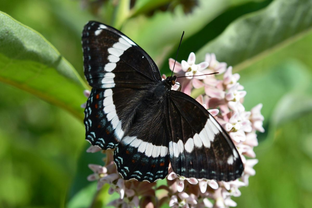 Photo: White admiral butterfly on common milkweed by Erica Nardone.