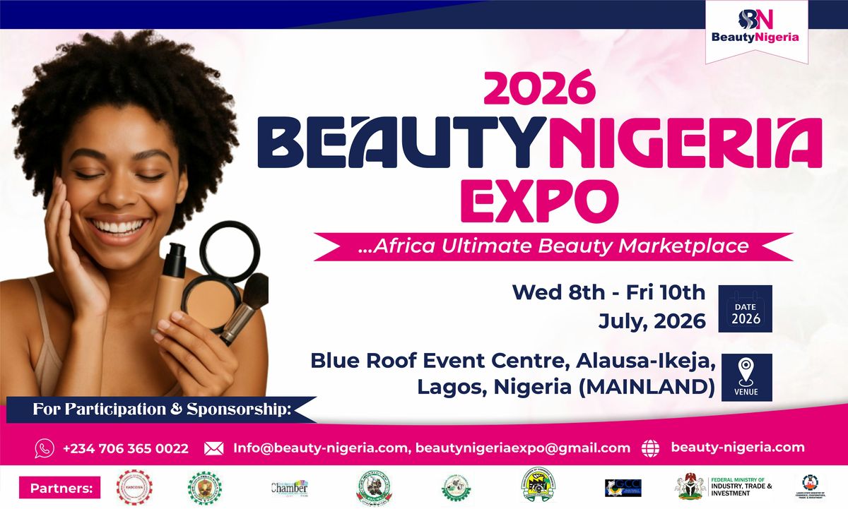 The 2026 Beauty Nigeria Expo is set to take place from Wednesday, 8th April, to Friday, 10th July 2026, at Blue Roof Event Centre, Al ausa-Ikeja, Lagos, Nigeria (MAINLAND). This premier event is expected to attract a diverse audience, including top government officials, industry leaders, decision-makers, trade associations, importers, distributors, beauty brands, and aspiring business representatives in the beauty ans Wellness Sector. The Beauty Nigeria will serve as a platform to bring together manufacturers, innovators, and professionals from the global beauty industry. The exhibition will showcase the latest trends, products, and innovations across skincare, cosmetics, haircare, wellness, and beauty technology.With a focus on promoting trade and investment, the expo aims to provide solutions tailored to Nigeria's beauty market and foster meaningful connections within the global beauty community. Don't miss this opportunity to be a part of the vibrant world of beauty and wellness