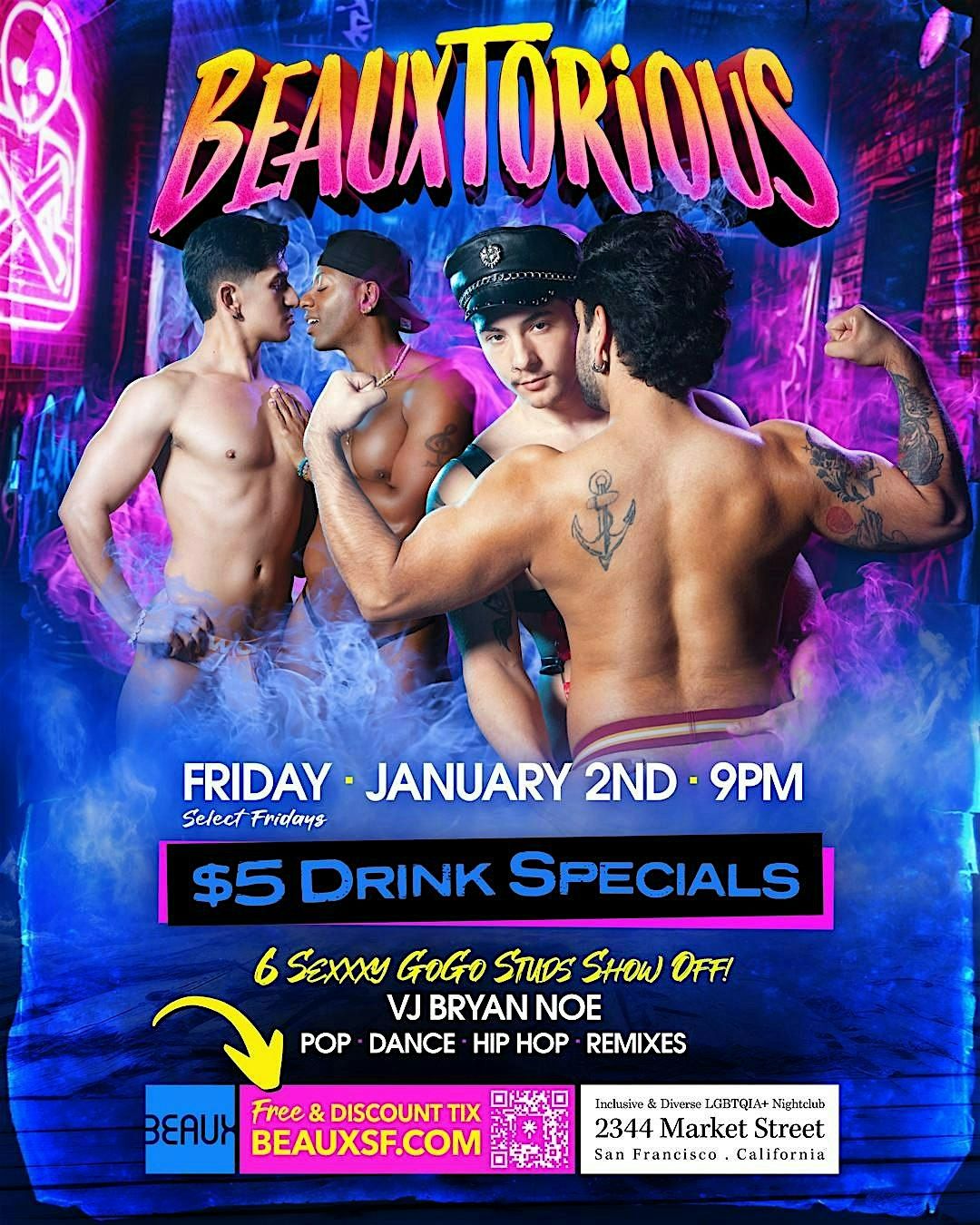 Our GOGO BOY party BEAUXTORIOUS is the hotttest pop dance party in the Castro. Watch 6 of our gogo studs show you what they are working with. This will be the official after party for the Rupaul's Drag Race viewing party with Kori King performing live.