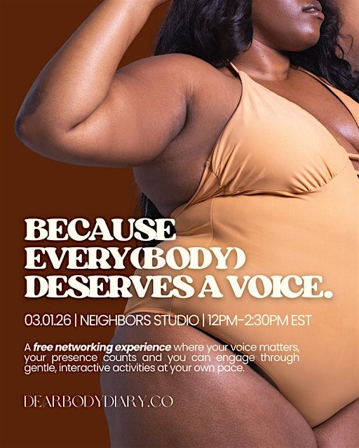 On Sunday, March 1, 2026, we'll be hosting Because Every(Body) Deserves a Voice at Neighbors Studio in Jersey City, New Jersey from12PM-2:30PM EST for an intentional experience designed to honor your voice and presence with women.