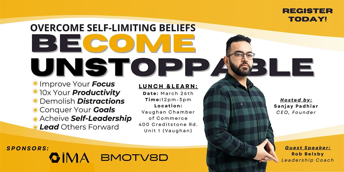 1:30pm - 2:00pm: Become Unstoppable (Speaker: Sanjay Padhiar)