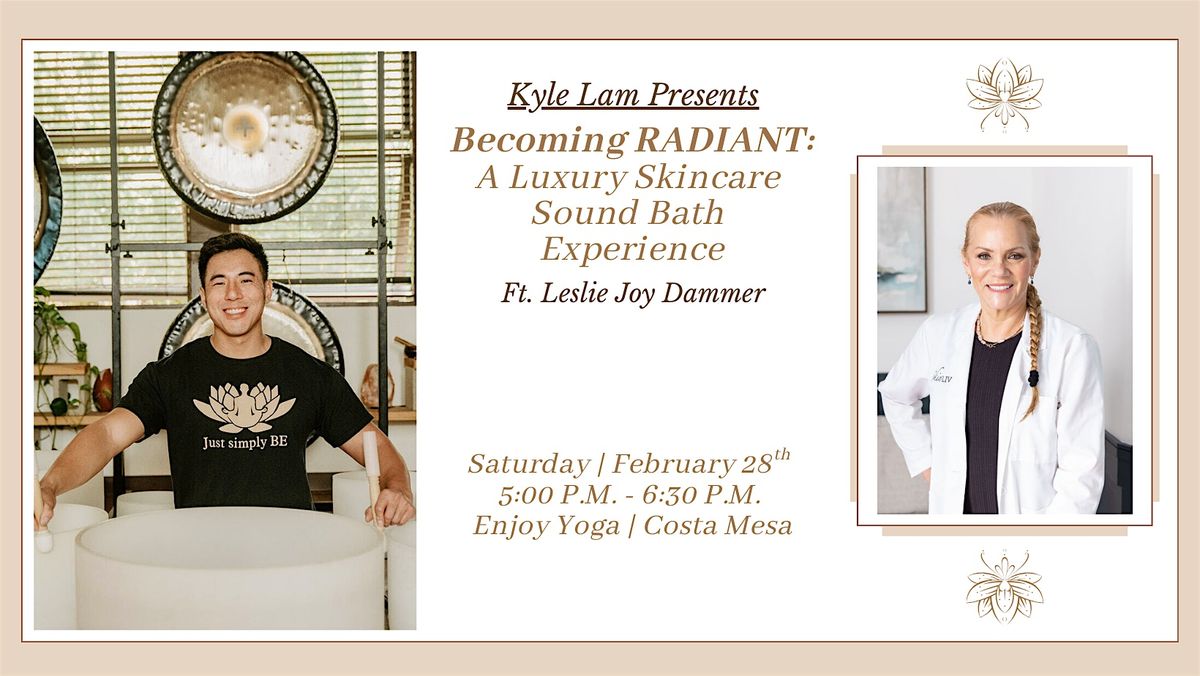 We invite you into an evening designed to elevate both inner alignment and outer luminosity. Becoming Radiant is a curated immersion where the art of sound healing and the science of advanced skincare converge. Guided by Kyle Lam’s restorative sound bath, this experience is paired with a luxury skincare journey led by licensed aesthetician Leslie Joy Dammer, founder of SkinLIV in Newport Beach. With more than fifteen years of professional expertise, Leslie is known for her integrative approach to skin wellness, merging clinical precision with a holistic understanding of how emotional balance, lifestyle, and internal well-being shape the way we age and glow.