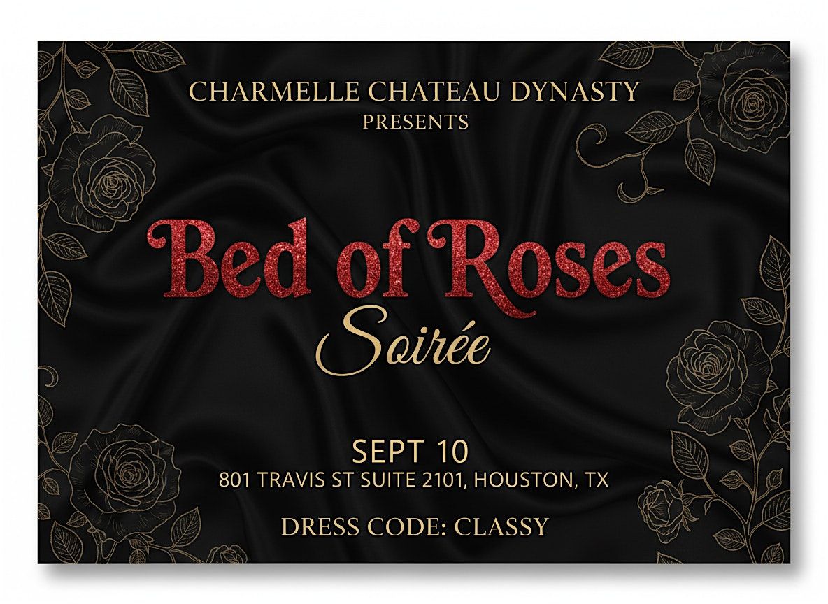 Welcome to the Bed of Roses Soirée Houston Edition! 🌹 Get ready to celebrate at Charmelle Chateau Dynasty HQ on Sept 10, 2026, at 6:00 PM (Central Time). Join us for a night filled with music, dancing, and enchanting rose-inspired vibes. Don’t forget to wear your most elegant rose-toned or floral attire! Let’s make this a night to remember. See you there!