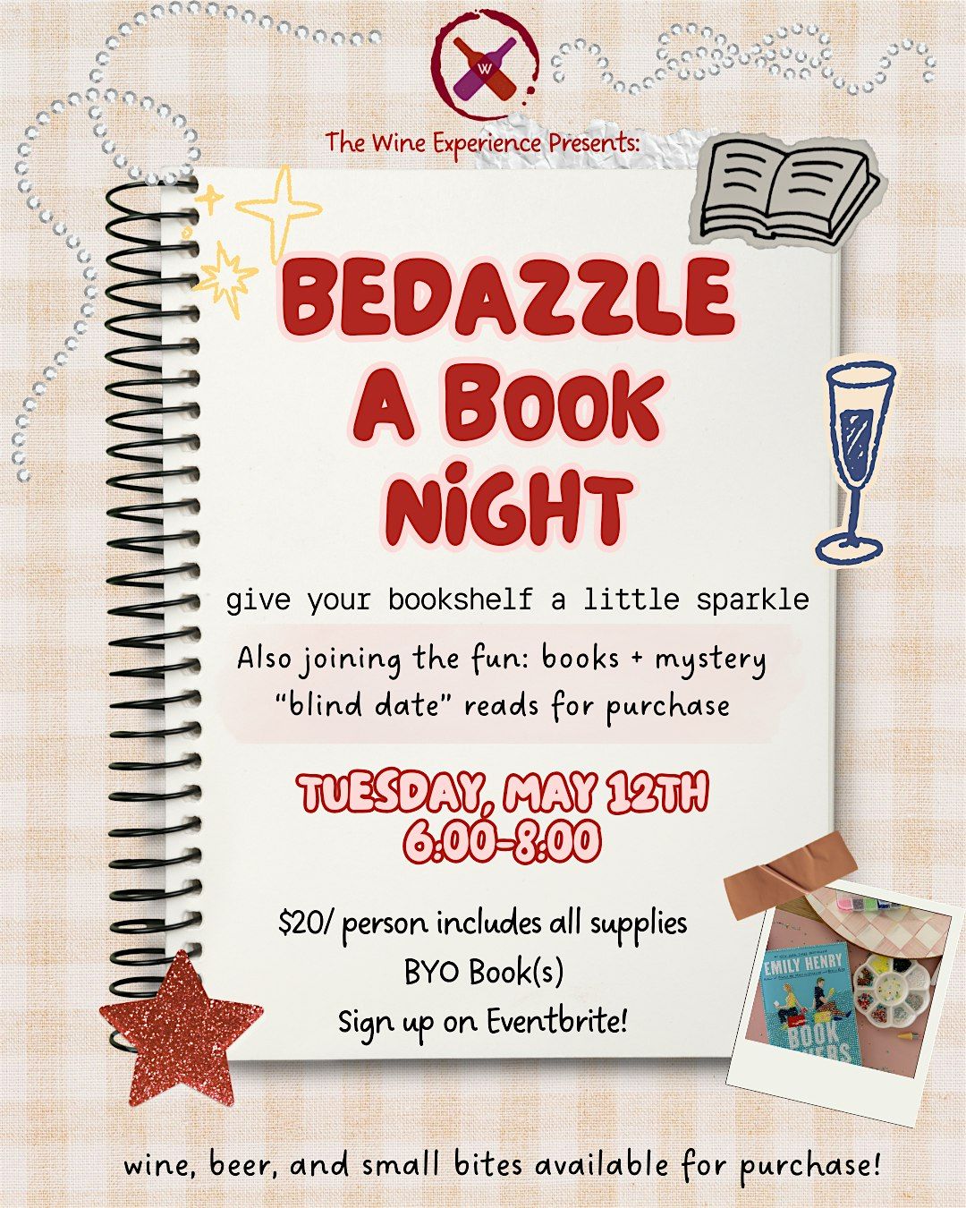 On Tuesday, May 12th from 6:00–8:00 PM, come unwind, connect, and personalize your favorite reads by bedazzling your book covers. Whether you bring one book or a few, you’ll have everything you need to transform them into something uniquely yours.