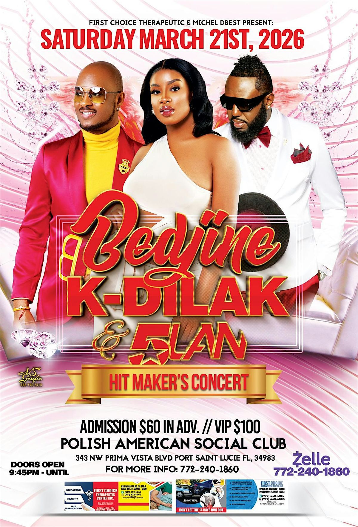 Vini selebre avèk nou Samdi 21 Mas 2026 pou yon gwo konsè an dirèk ak Bedjine, K-DILAK & 5LAN, twa gwo atis ki pral mete dife sou sèn nan ak pi gwo hit yo.