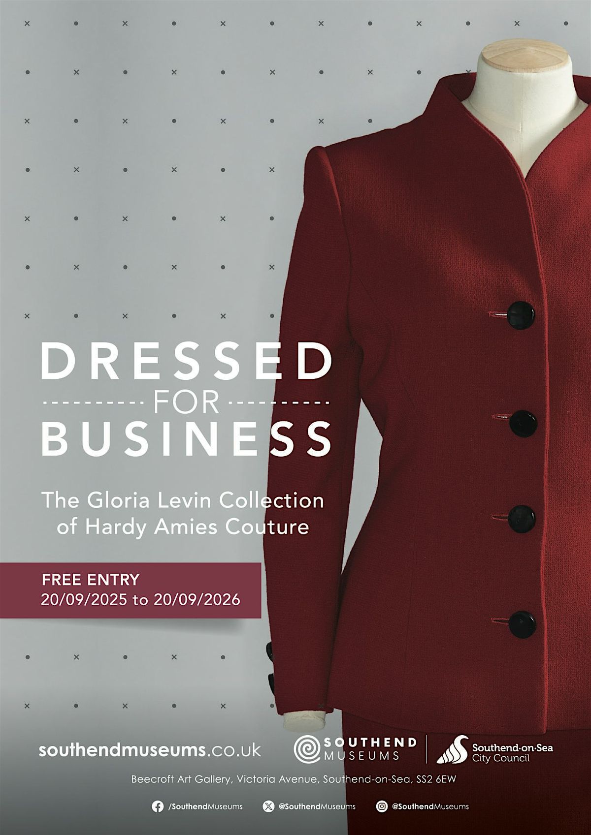 The new Fashion exhibition of the Beecroft Art gallery, ‘Dressed for Business: The Gloria Levin Collection of Hardy Amies Couture’, explores the wardrobe of Gloria Levin, one of the most influential women in recent British business history. Between the 1960s and 1990s, Gloria became a record-breaking businesswoman in a male dominated industry.