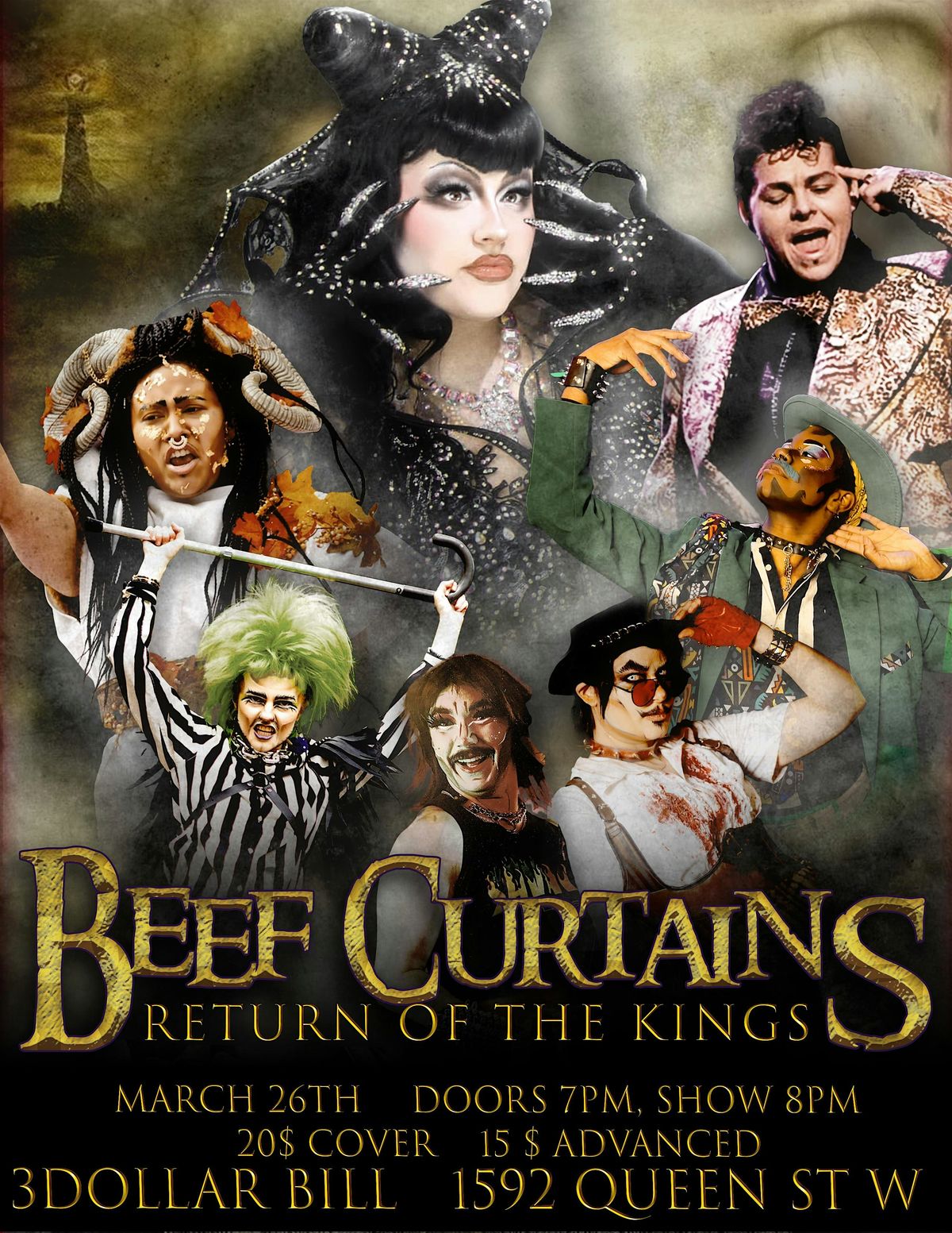 Beef Curtains: Return of the King storms into Toronto's middle earth for a night of drag excellence and burelsque at Three Dollar Bill.