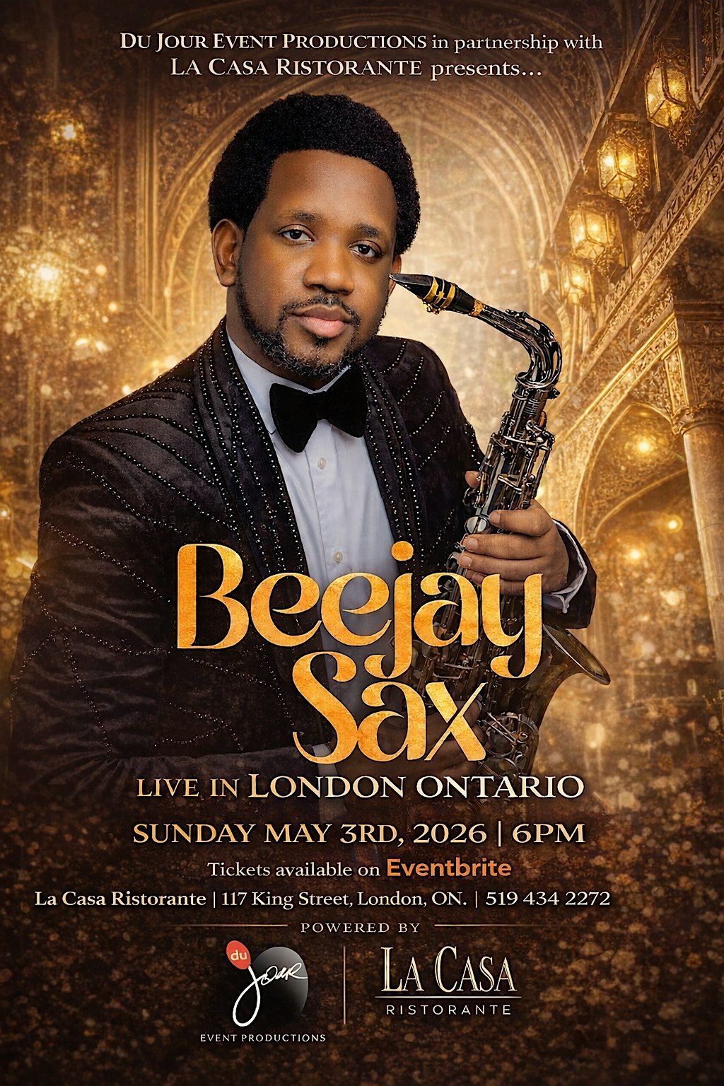 On Sunday, May 3rd, internationally acclaimed saxophonist Beejay Sax takes the stage for an exclusive, intimate performance in London, Ontario.