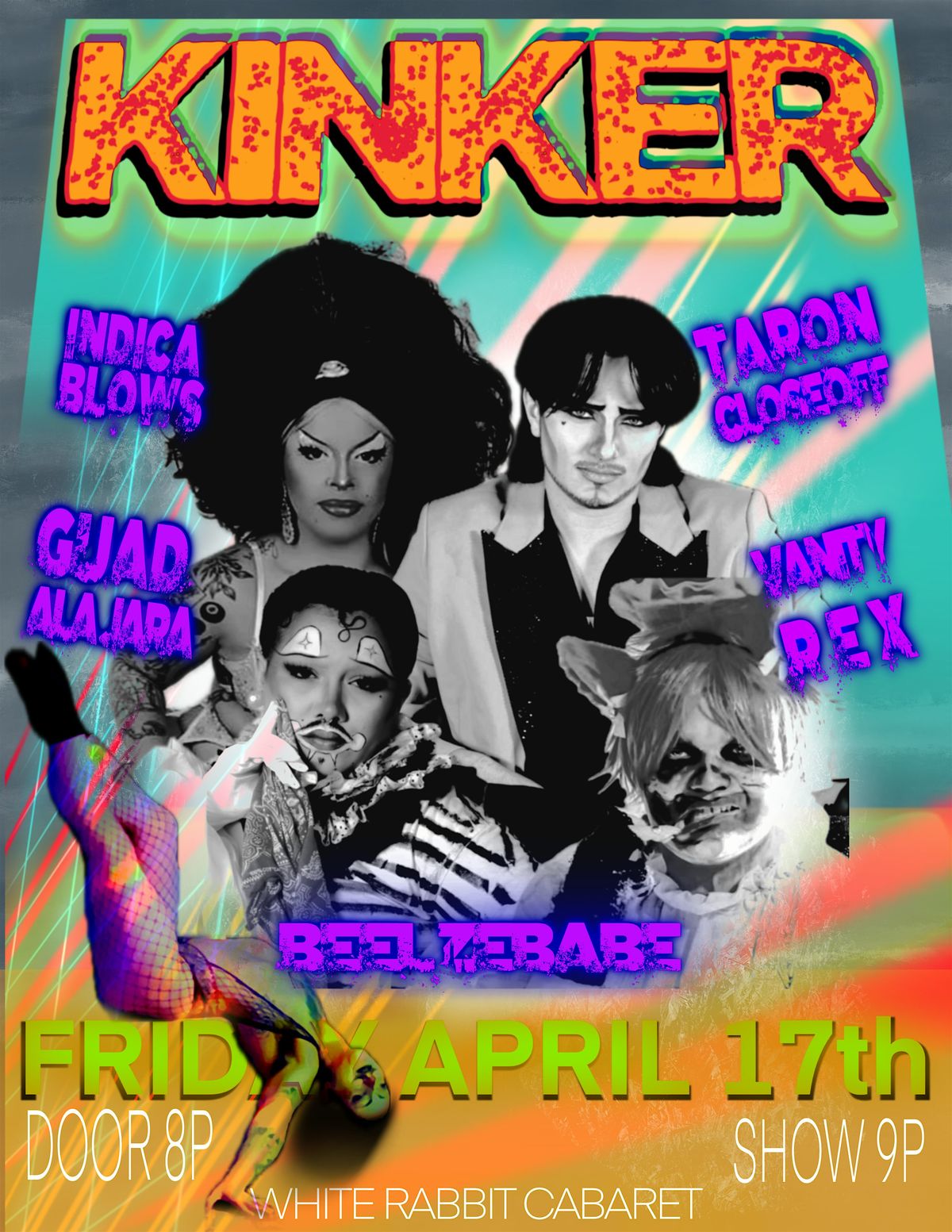 Ring Master Beelzebabe has a cast of KINKERS who will surely leave you amazed! Come see the strange and creepy world of Beelzebabe’s side show acts and band of misfits take over the White Rabbit.