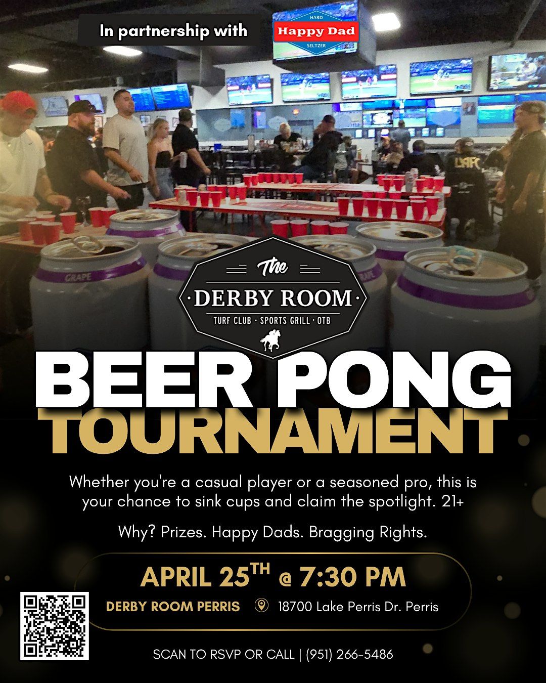 It’s time again to test your skills at our Happy Dad Beer Pong Tournament at the The Derby Room - Apr 25 @ 7:30 PM