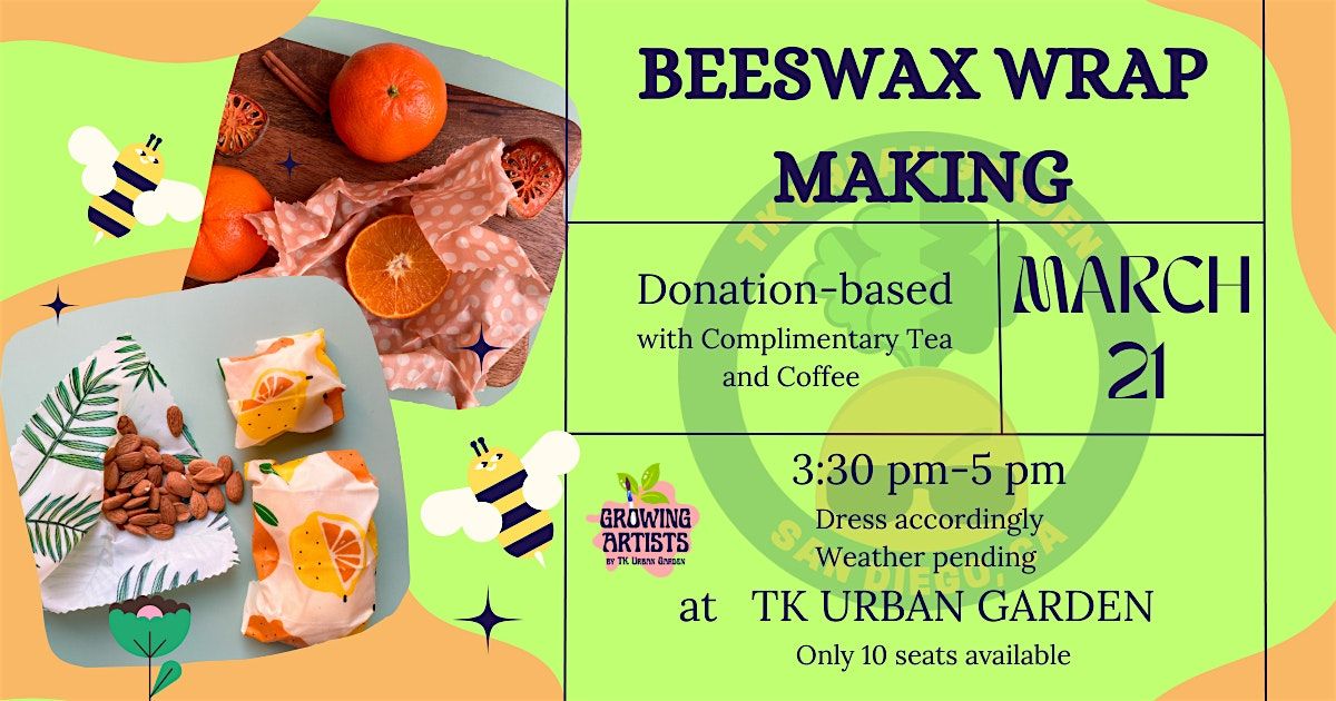 Join us on March 21, 2026, at 3:30 PM (Pacific Time) for a fun, hands-on Beeswax Wrap Making workshop! Learn how to create your own eco-friendly wraps to keep your food fresh, all while enjoying a relaxed vibe and great company. Whether you're a crafty newbie or a pro, this event is perfect for anyone looking to add a sustainable touch to their kitchen. Don’t miss out!