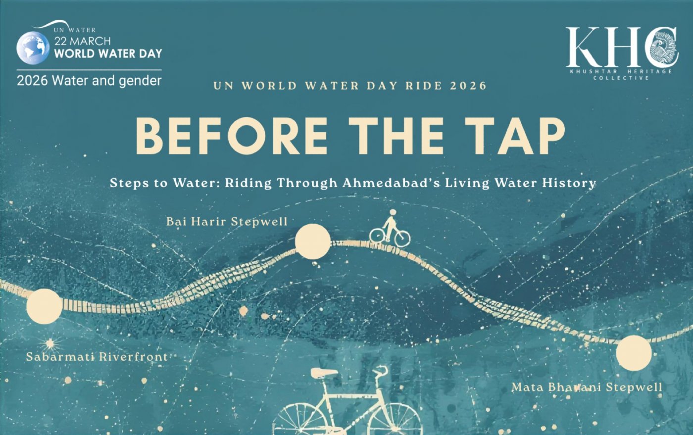 Steps to Water: Riding Through Ahmedabad’s Living Water Heritage is a guided cycling journey tracing the city’s relationship with water—from the Sabarmati River to historic stepwells. Through stories, shared reflections, and simple activities, participants explore how water shaped everyday life, community spaces, and the city’s evolution from 1411 to today.