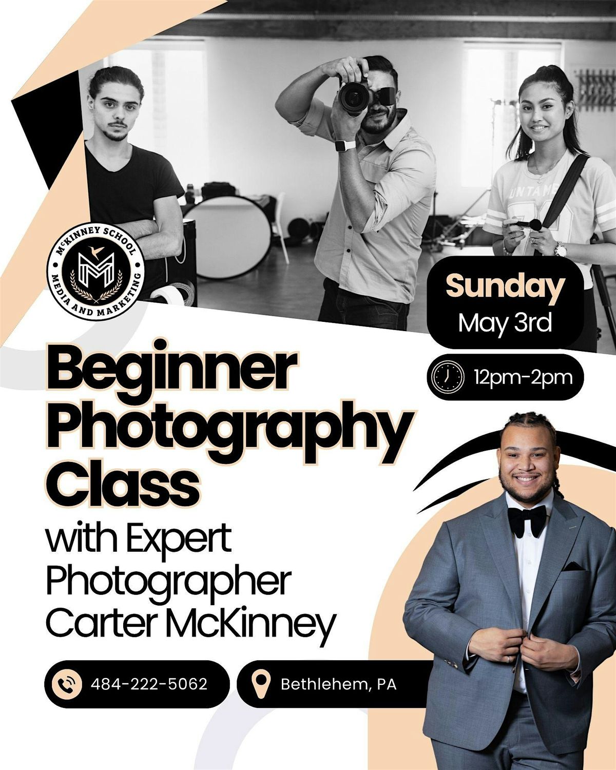 Enhance your learning experience by booking an exclusive one-on-one session with Carter McKinney, renowned photographer and founder of McKinney Media. This personalized session offers tailored advice and advanced strategies to further hone your skills. (Additional fee applies.)