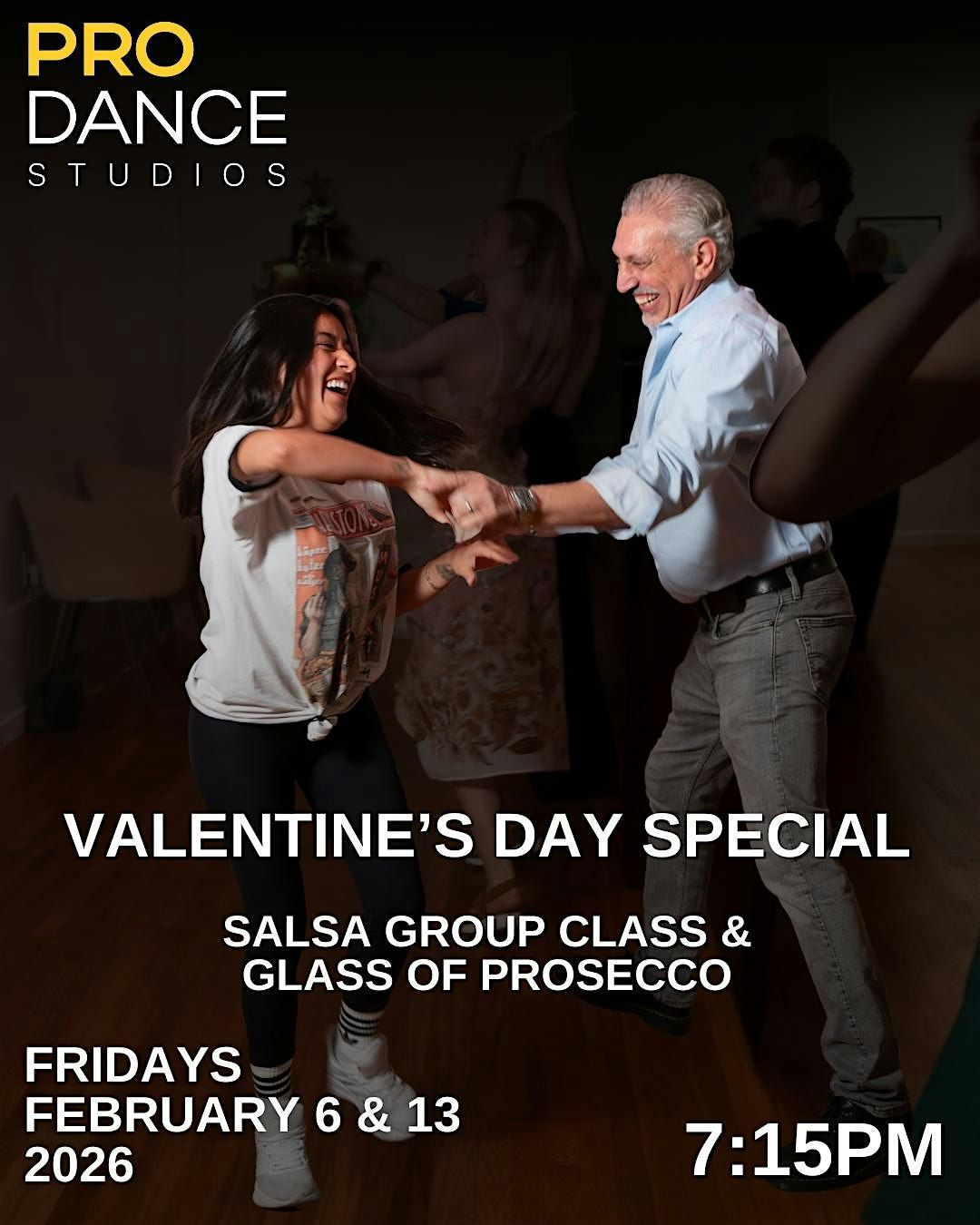 A Valentine’s Day Salsa special! Dance, connect, and enjoy a complimentary glass of prosecco at PRO DANCE. No partner needed