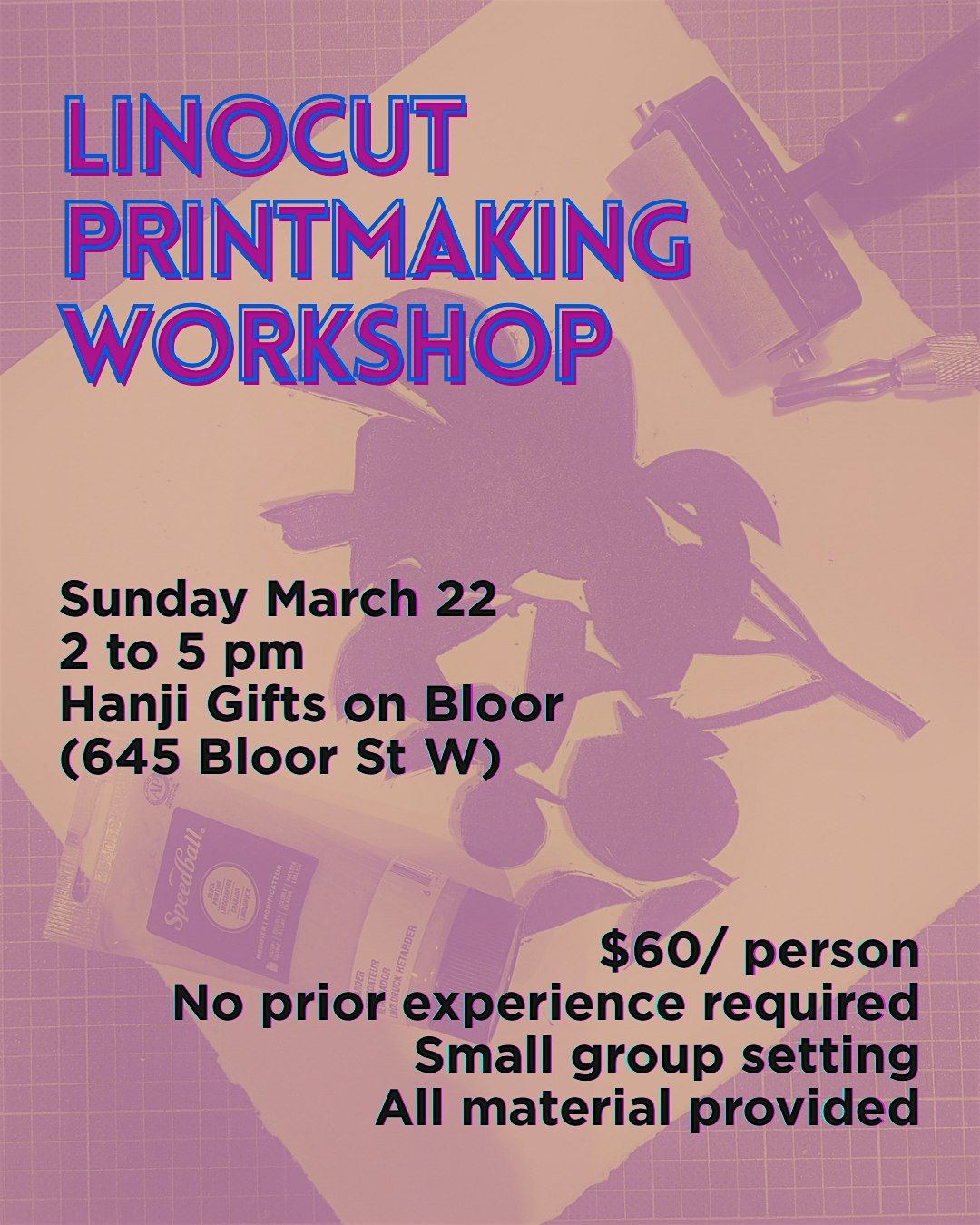 You'll go home with 2 postcards with your design printed on it as well as your carved linoleum block which you can use it over and over on paper or fabric.All materials are supplied.
