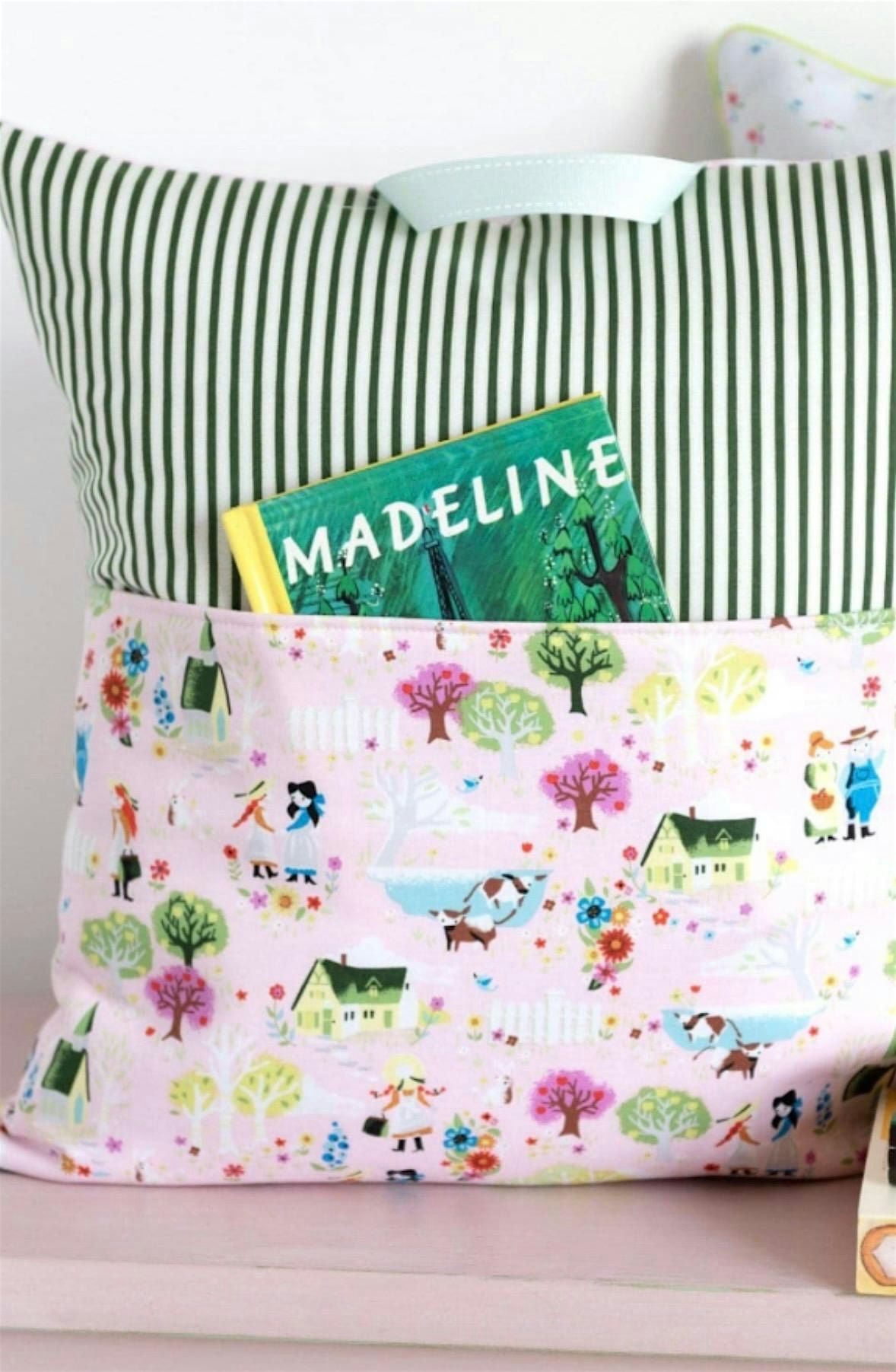 - Step-by-step guidance in sewing a book pillow cover and pocket.