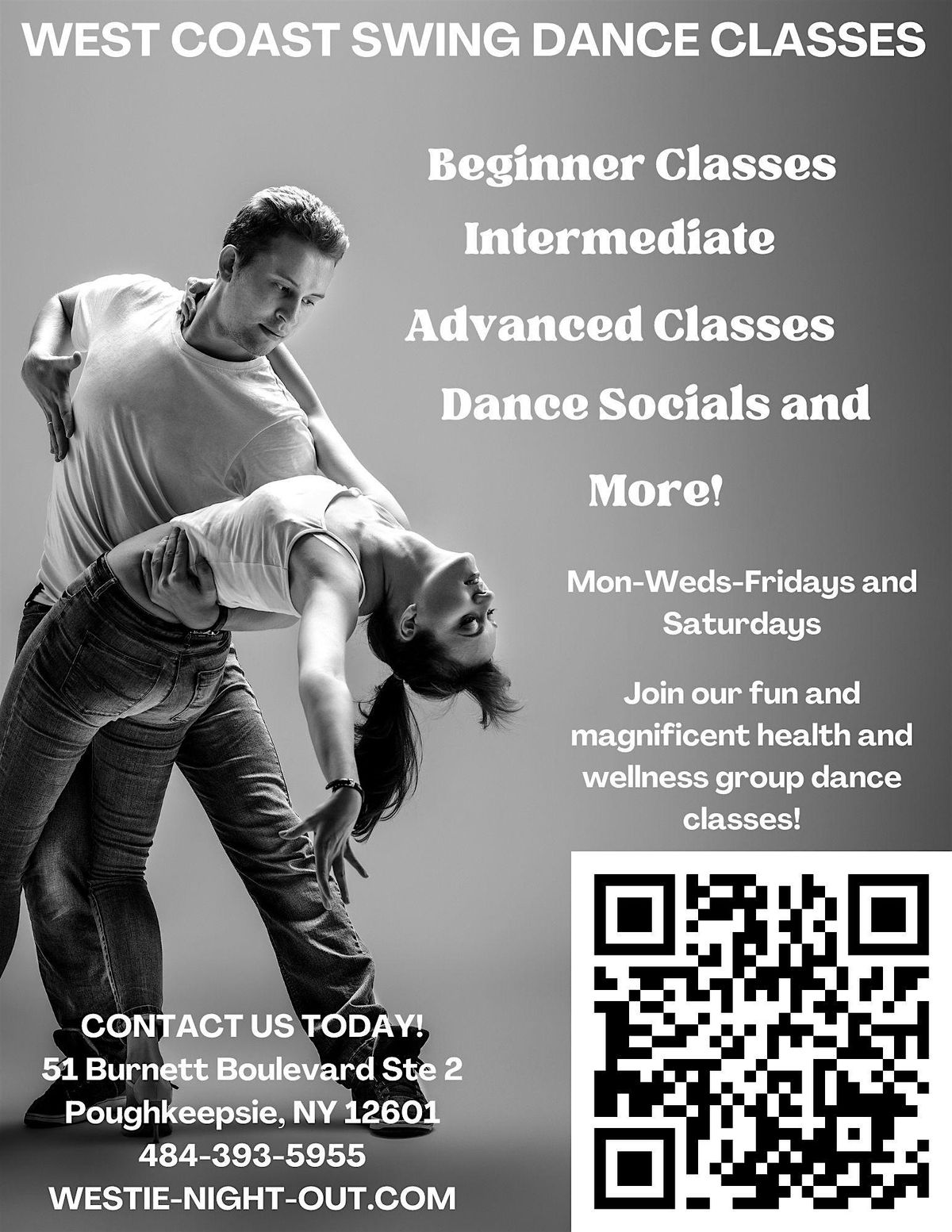Join our Beginner West Coast Swing Dance Class, taught by Master Level Dance Instructor Christopher Bledsoe! Whether you're new to dancing or looking to refine your skills, this class offers expert instruction in a spacious 4,200 square foot studio. Located at 51 Burnett Boulevard, Suite 2, Poughkeepsie, NY. Call 484-393-5955 to reserve your spot today!