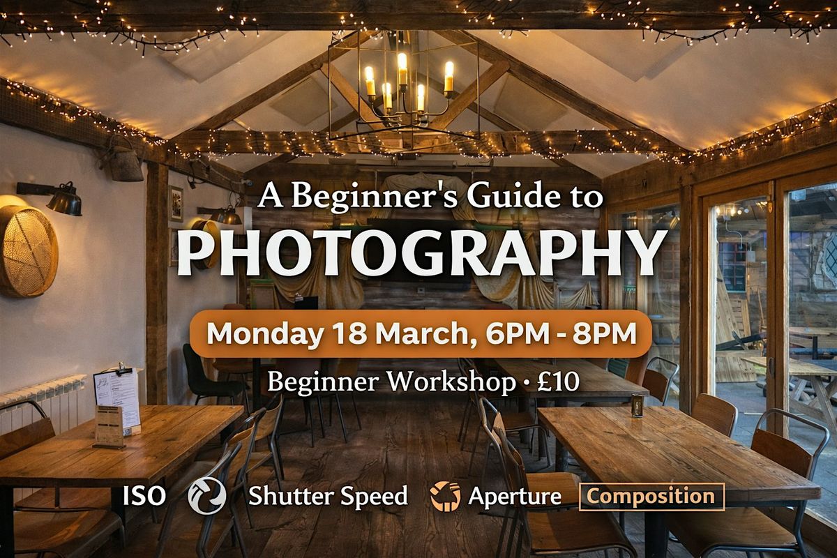 A Beginner’s Guide to Photography is a relaxed, two-hour session designed to help you understand how your camera really works. You’ll learn the core principles of photography in a simple, practical way, without technical jargon or pressure.