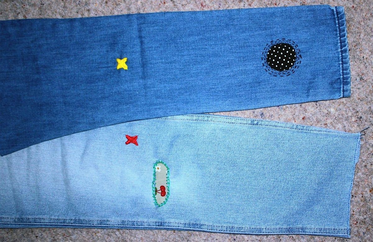 Textile artist Jane will demonstrate the many ways decorative embroidery and embellishments can be used to disguise damage to a woven textile such as denim or cotton. You will be guided through assessing the damage and choosing a method of repair. You will learn how to hide or make a feature of a stain or small hole with embroidery, buttons or sequins.
