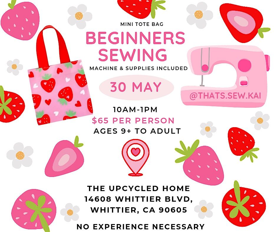 Beginner Sewing Machine Class, learn how to sew from a professional fashion designer/costume designer. Create a mini tote bag in class!