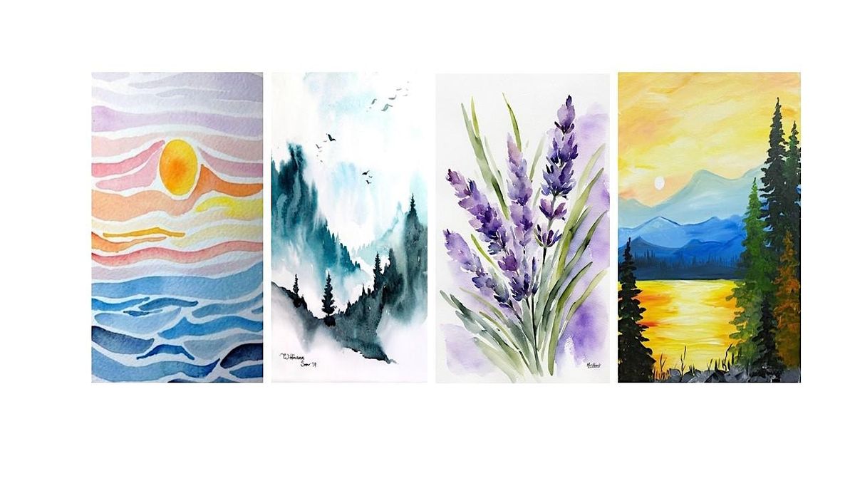 Sign up for ALL FOUR CLASSES to get a kit including brushes, watercolour pad, and paints. Or, sign up for individual classes. (kits not included)