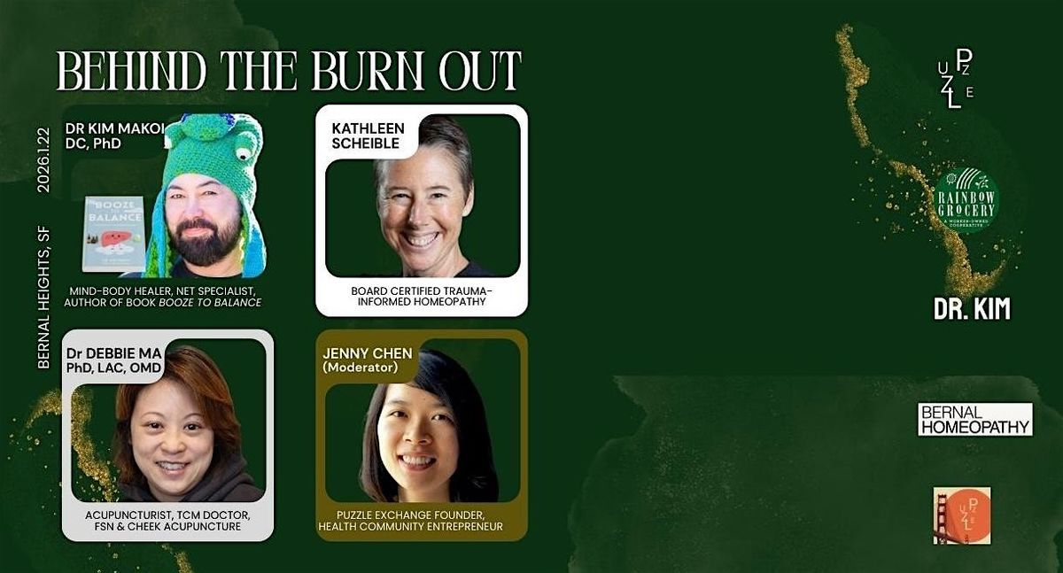 For this night, we’re bringing together 3 of the Bay Area’s kindest, most grounded practitioners to share honest stories and practical tools for working with stress before it works you.