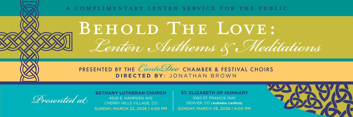Join Canto Deo, Denver’s cherished community choir dedicated to sacred choral music, for an inspiring Lenten program titled Behold the Love: Lenten Anthems and Meditations. This evocative service invites deep reflection on Christ’s sacrificial love, boundless mercy, and redeeming grace through a rich selection of anthems spanning centuries and styles.