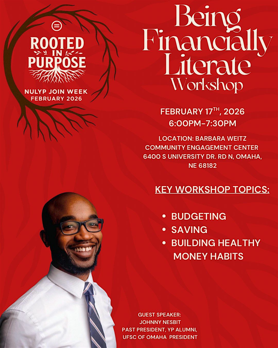 This workshop will be led by our Past President and Young Professional Alumni, who now serves as the Urban Financial Services Coalition – Omaha Chapter President Johnny Nesbit. With both professional expertise and a passion for community financial empowerment, he will break down real life strategies to help you take control of your money instead of letting it control you.