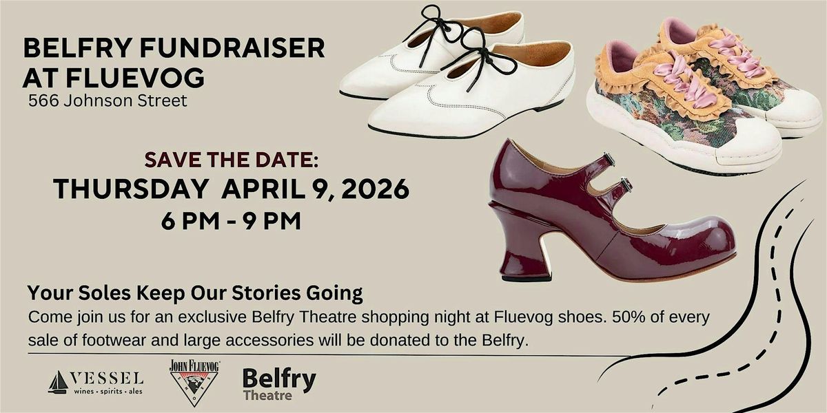 We’re thrilled to invite you to a one‑night‑only Fluevog and Belfry Theatre Fundraiser — an evening of community, creativity, and fantastic footwear!