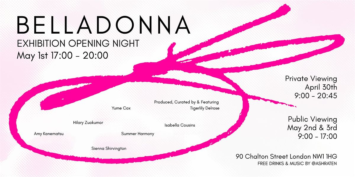 Join us for the opening night of Belladonna, a breathtaking exhibition featuring seven young, ethnically diverse, international, and non-gender conforming women. Our artworks harness the powerfully feminine and encompass the intersectional experience. Our incredibly elaborate and nuanced experiences are reflected in our unique exploration, passionately shaped by our mediums and artistic practices. Discover a cohesively collection, curated by Tigerlily Delrose, of mixed media artworks and immersive installations from engaged female artists.