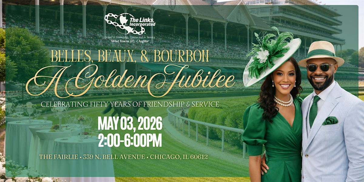 Please join West Towns (IL) Chapter of The Links, Incorporated Belles, Beaux & Bourbon: A Golden Jubilee, an unforgettable, high-energy Kentucky Derby–themed celebration commemorating 50 Years of Friendship and Service.