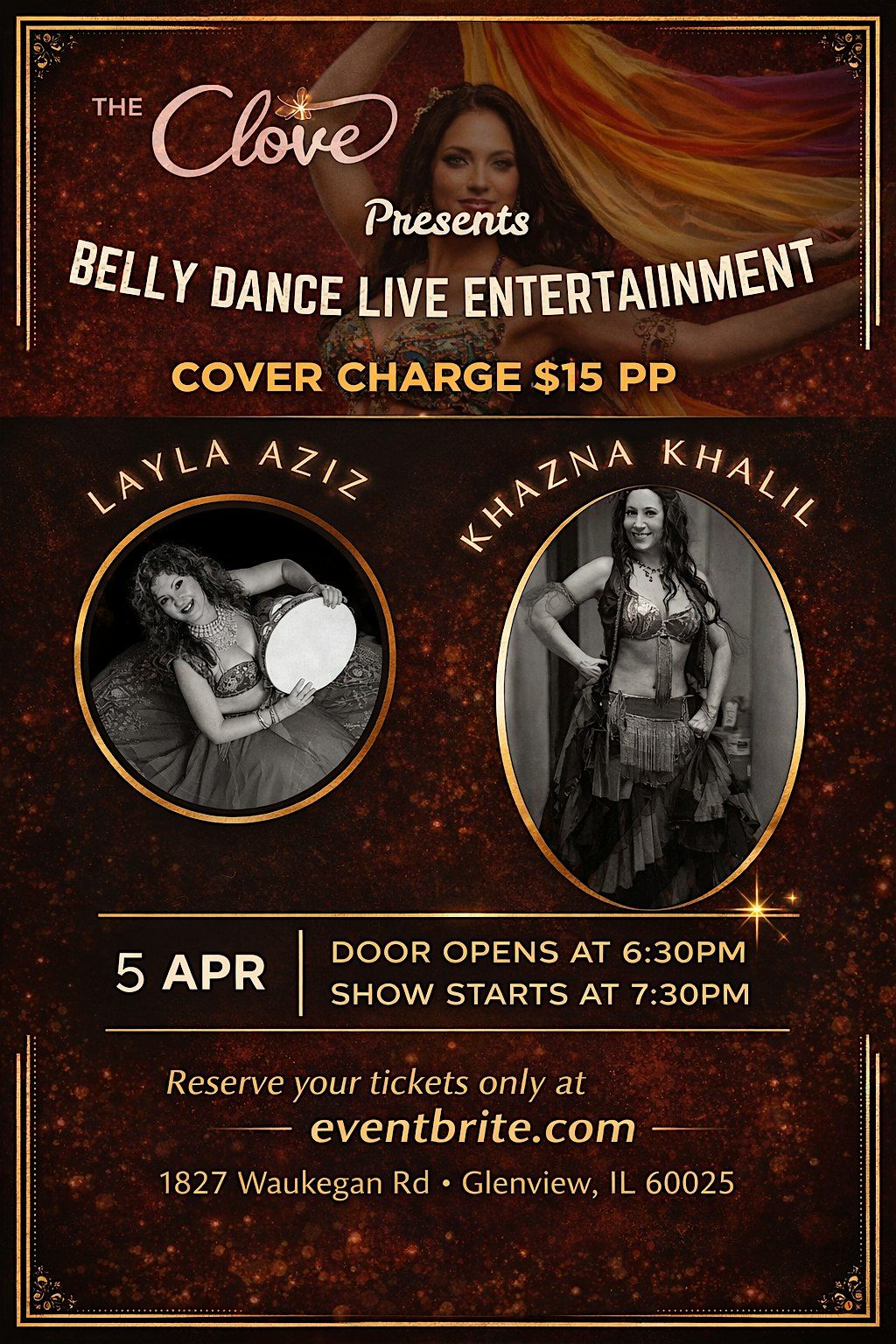 Get ready for an amazing night filled with the mesmerizing moves of belly dance, accompanied by live music that will keep you grooving! This in-person event is perfect for anyone who loves vibrant rhythms and dazzling performances. Whether you're a dance enthusiast or just looking for some fun, come join us and experience a night full of energy and excitement!