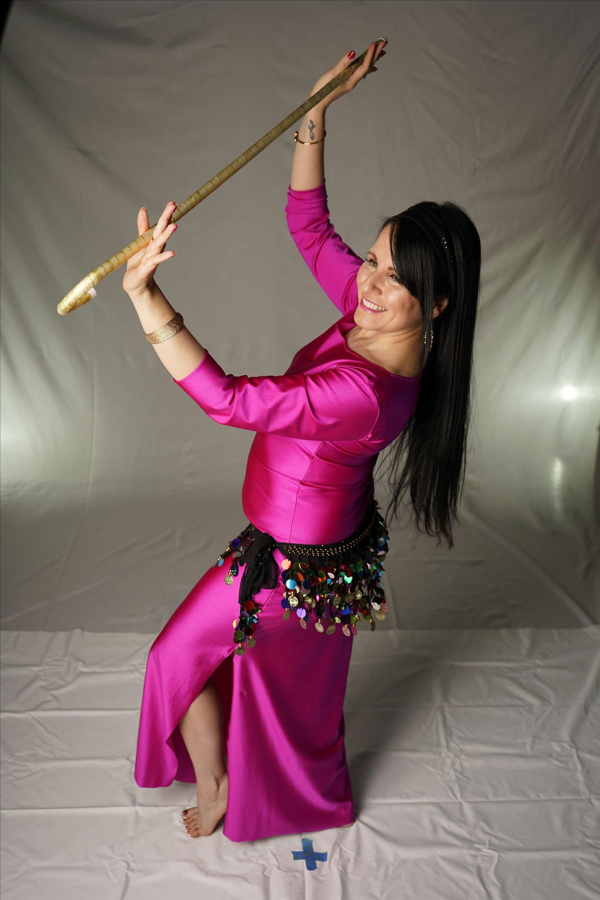This class uses bellydance steps and drills to raise your heart rate and give you a great workout while you are having fun!