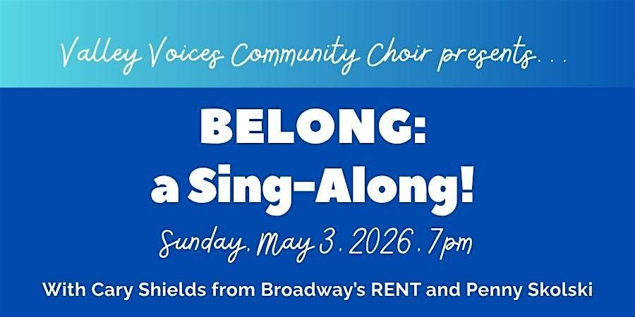 Valley Voices, featuring Kate Brown as the director, invites you, your friends and families to a feel-good concert that invites all to sing along or, just listen and feel the joy. With Cary Shields from Broadway's RENT and Penny Skolski.
