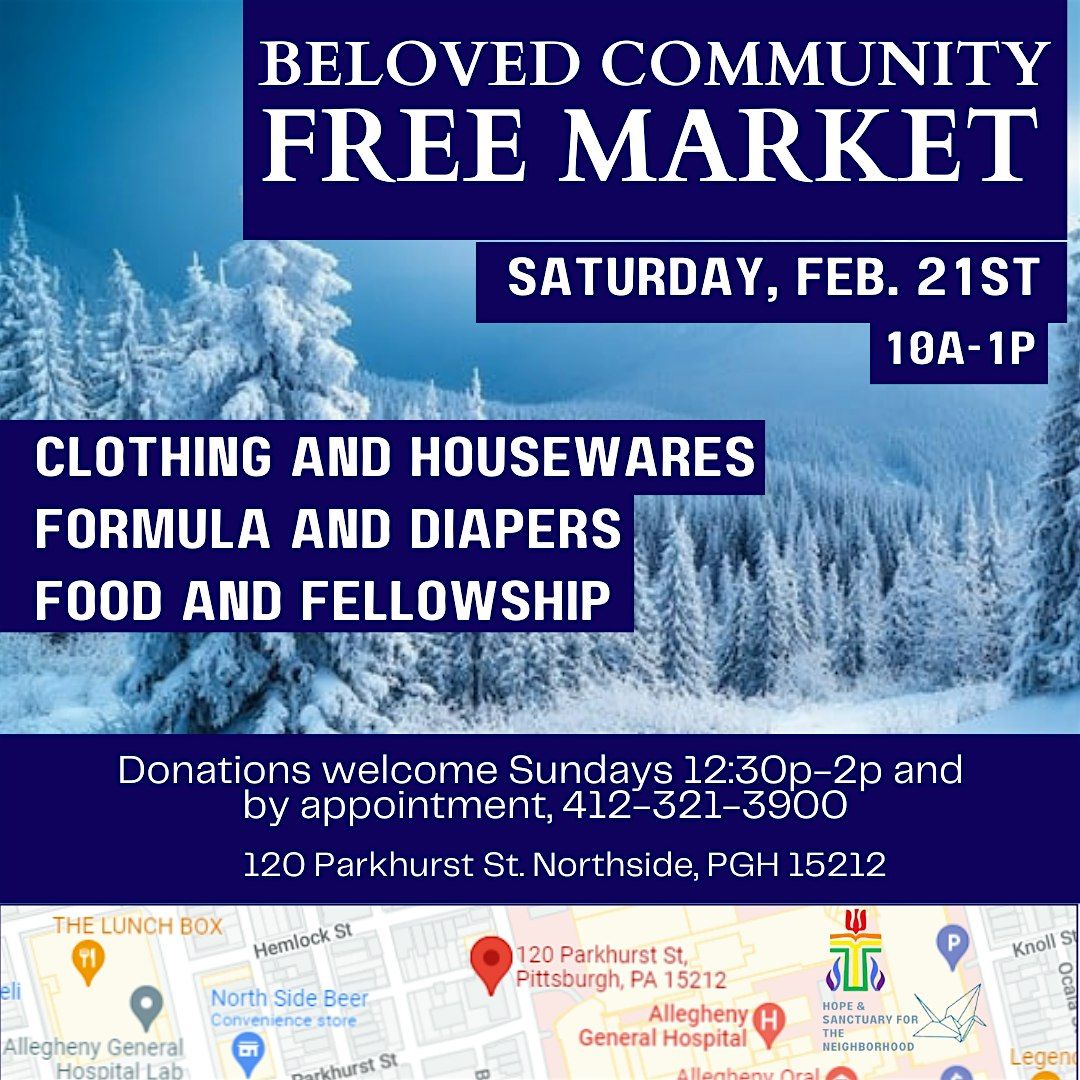 Come join us at our next Free Market on Saturday February 21st! We will have gently used clothing (adult and children's) and housewares as well as small furniture items. We will have new formula and diapers for families in need. There will also be a hot meal and space for fellowship together. Join us for this wonderful event as we get to know each other as neighbors. Reselling discouraged.