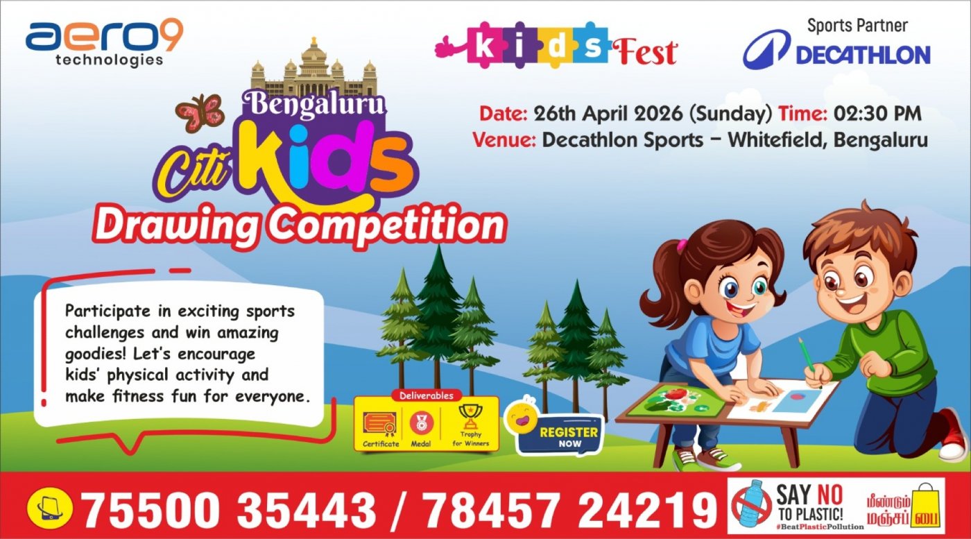 Aero9 Technologeis presents “Bengaluru CITI KIDS Drawing Competition at Decathlon Sports India Whitefield, Bengaluru for kids age from 3yrs to 13yrs