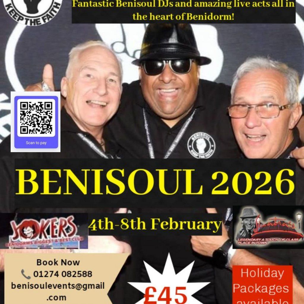 Join us at Benisoul in Benidorm 2026 for an unforgettable week of N/ Soul, Motown reggae and Ska!4th to 9th Feb 01274082588 [email protected]